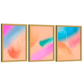 Quadro Decorativo Trio Abstrato Pintura Colorida Moldura Preta - 84x54cm -