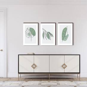 Quadro Decorativo Trio De Folhas Verdes Quarto E Sala