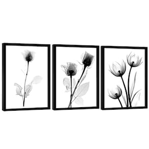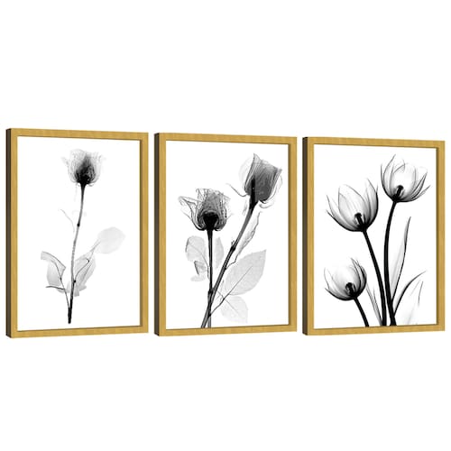 Quadro Decorativo Trio Flor Estilo Desenho Moldura Dourada - 84x54cm -