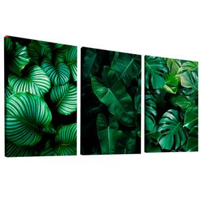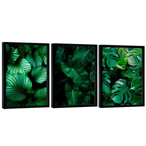 Quadro Decorativo Trio Folhas Verdes Moldura Preta - 118x78cm -