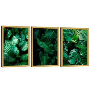 Quadro Decorativo Trio Folhas Verdes Moldura Preta - 60x40cm -