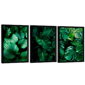 Quadro Decorativo Trio Folhas Verdes Borda Infinita - 118x78cm -