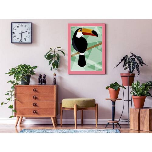 Quadro Decorativo Tucano Abstrato Sala Quarto + Vidro 33x25 - Cor: Rosa