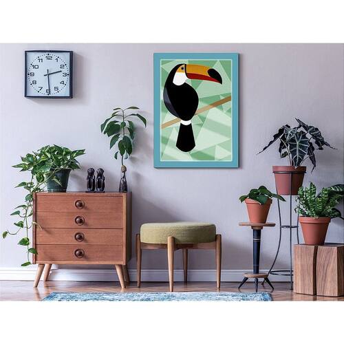 Quadro Decorativo Tucano Abstrato Sala Quarto + Vidro 33x25 - Cor: Azul