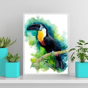 Quadro decorativo tucano aquarela 45x34cm Moldura: madeira branca Informações do produto tire todas as suas dúvidas no descritivo abaixo: decoração para quarto, sala, cozinha, escritório, área gourmet e muito mais. Chega de paredes vazias. Medidas - cada peça tem 45x34cm a3 . Material do papel - papel fotográfico brilhante de altíssima resolução acabamento - todos os quadros são acompanhados de uma película de acetato para proteção da imagem. - os quadros são embalados de forma segura com plástico bolha com camada dupla de acordo com o tamanho dos quadros. Garantia - garantia de 3 meses. Meu quadro chegou. Como posso fixá-lo Você precisa apenas de um martelo e um prego, pois os quadros já vão acompanhados de penduradores. Esta é a forma mais indicada. Caso prefira, você pode utilizar uma fita dupla face neste caso, sugerimos de alta qualidade para evitar que descole e seu quadro caia . Como posso limpar meu quadro A limpeza é feita como um móvel comum da sua casa. Apenas um pano seco ou espanador são suficientes para tal