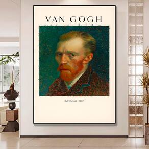 Quadro Decorativo Van Gogh Self Portrait Moldura Branca - 180x105cm -