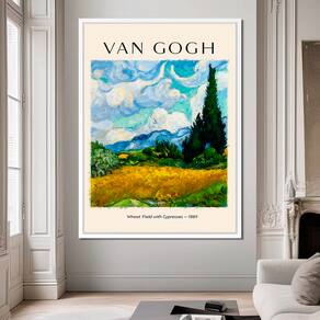 Quadro Decorativo Van Gogh Wheat Field With Cypresses Moldura Preta - 118x78cm -