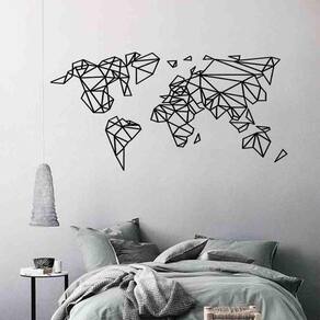O Quadro Decorativo Vazado Mapa Mundi Geométrico irá trazer um toque requintado para o seu ambiente. O quadro é produzido em MDF com 3mm de espessura cortado a laser. Suas bordas na cor preta é feito pela própria máquina de corte a laser, dando o acabamento impecável. O quadro é composto por três peças que juntas formam uma linda imagem. Para deixá-los perfeitos em sua parede deixe um espaço com cerca de 3cm a 5cm entre uma peça e outra, assim você terá um resultado fantástico. O quadro se encaixa bem em qualquer ambiente, com sofisticação e design, esse quadro é a peça chave para tornar seu lar mais aconchegante.