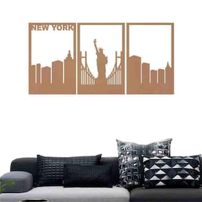 O Quadro Decorativo Vazado New York irá trazer um toque requintado para o seu ambiente. O quadro é produzido em MDF com 3mm de espessura cortado a laser. Suas bordas na cor preta é feito pela própria máquina de corte a laser, dando o acabamento impecável. O quadro é composto por três peças que juntas formam uma linda imagem. Para deixá-los perfeitos em sua parede deixe um espaço com cerca de 1cm entre uma peça e outra, assim você terá um resultado fantástico. O quadro se encaixa bem em qualquer ambiente, com sofisticação e design, esse quadro é a peça chave para tornar seu lar mais aconchegante.