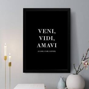 Quadro decorativo veni vidi amavi 24x18cm Cor: moldura branca Informações do produto tire todas as suas dúvidas no descritivo abaixo: decoração para quarto, sala, cozinha, escritório, área gourmet e muito mais. Chega de paredes vazias medidas - cada peça tem 24x18cm a5 . Material do papel - papel fotográfico brilhante de altíssima resolução acabamento - todos os quadros são acompanhados de uma película de acetato para proteção da imagem. - os quadros são embalados de forma segura com plástico bolha com camada dupla de acordo com o tamanho dos quadros. Garantia - garantia de 3 meses. Meu quadro chegou. Como posso fixá-lo Você precisa apenas de um martelo e um prego, pois os quadros já vão acompanhados de penduradores. Esta é a forma mais indicada. Caso prefira, você pode utilizar uma fita dupla face neste caso, sugerimos de alta qualidade para evitar que descole e seu quadro caia . Como posso limpar meu quadro A limpeza é feita como um móvel comum da sua casa. Apenas um pano seco ou espanador são suficientes para tal