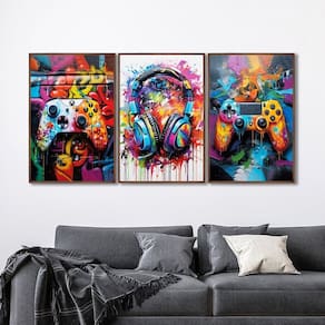 Quadro Decorativo Vídeo Game Modelo Gamer Abstrato Colorido com 3 Telas cm ou cm para Sala, Quarto, Banheiro, Escritório, Hall, Hall de Entrada, Estúdio, Salão, Clínica, Sala de Jogos, Lan House, Barbearia, Salão de Beleza, Camarim.Especificações Técnicas:Modelo: Gamer Abstrato Colorido;Material da Imagem: Papel premium fotográfico de alta qualidade;Material da Moldura: Madeira de reflorestamento revestida;Espessura da Moldura: 2,7cm de profundidade e 1,5cm frontal;Medidas: cm ou cm;Acabamento: Fita Kraft;Acompanha: Suporte de serrilha para quadros e parafusos.Transforme seu espaço com elegância e sofisticação! Não perca a oportunidade de adquirir o exclusivo Quadro Decorativo Gamer Abstrato Colorido com 3 Telas a um preço incrível! Acompanha Fixação para Parede: Sim Ambiente Principal: Sala de Estar Cor: Preto Cor do Produto: Preto Espessura: 20 mm Espessura do Vidro: 3 mm Itens Inclusos: Quadro com 3 telas Marca: ARTE PRÓPRIA Material Principal: Madeira Maciça Medida de Cada Item: 60cm x 90cm Origem do Produto: Nacional Peso: 15 kg Possui Paspatur: Não Possui Vidro: Sim Tema da Estampa: Teen Tipo de Quadro: Kit de quadros Vidro é Anti-Reflexo: Não Marca: ARTE PRÓPRIA