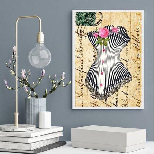Quadro decorativo vintage corpete 24x18cm - com vidro Moldura: madeira preta Informações do produto tire todas as suas dúvidas no descritivo abaixo: decoração para quarto, sala, cozinha, escritório, área gourmet e muito mais. Chega de paredes vazias medidas - cada peça tem 24x18cm a5 . Material do papel - papel fotográfico brilhante de altíssima resolução acabamento - todos os quadros são acompanhados de vidro para proteção da imagem. - moldura em madeira maciça na cor preta ou branca conforme produto escolhido e pendurador . - os quadros são embalados de forma segura com plástico bolha com camada dupla de acordo com o tamanho dos quadros. Garantia - garantia de 3 meses. Meu quadro chegou. Como posso fixá-lo Você precisa apenas de um martelo e um prego, pois os quadros já vão acompanhados de penduradores. Esta é a forma mais indicada. Como posso limpar meu quadro A limpeza é feita como um móvel comum da sua casa. Apenas um pano seco ou espanador são suficientes para tal Ean: 7898651009984