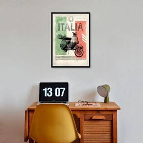 Quadro decorativo vintage vespa itália 33x24cm - com vidro Moldura: madeira preta Informações do produto tire todas as suas dúvidas no descritivo abaixo: decoração para quarto, sala, cozinha, escritório, área gourmet e muito mais. Chega de paredes vazias medidas - cada peça tem 33x24cm a4 . Material do papel - papel fotográfico brilhante de altíssima resolução acabamento - todos os quadros são acompanhados de vidro para proteção da imagem. - moldura em madeira maciça na cor preta ou branca conforme produto escolhido e pendurador . - os quadros são embalados de forma segura com plástico bolha com camada dupla de acordo com o tamanho dos quadros. Garantia - garantia de 3 meses. Meu quadro chegou. Como posso fixá-lo Você precisa apenas de um martelo e um prego, pois os quadros já vão acompanhados de penduradores. Esta é a forma mais indicada. Como posso limpar meu quadro A limpeza é feita como um móvel comum da sua casa. Apenas um pano seco ou espanador são suficientes para tal