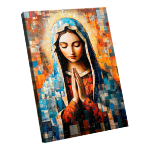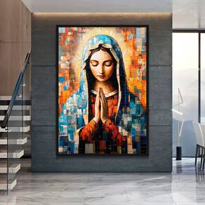 Quadro Decorativo Virgem Maria Em Grid Art Moldura Branca - 118x78cm -
