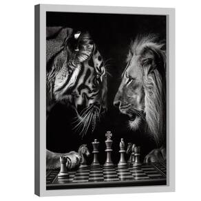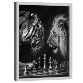 Quadro Decorativo Xadrez Felino Moldura Branca e Vidro - 150x100cm -