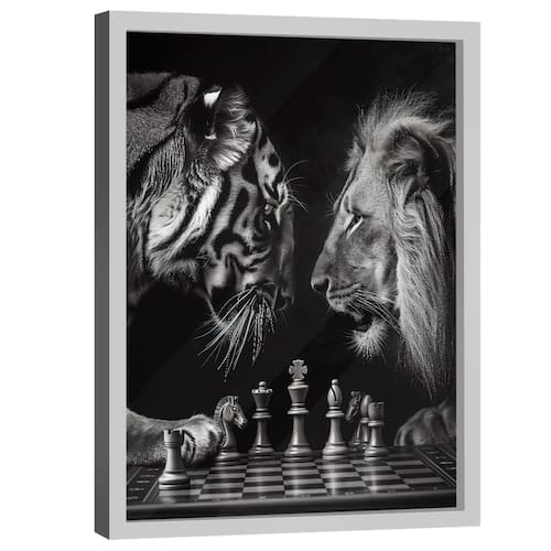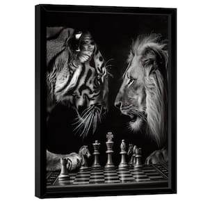 Quadro Decorativo Xadrez Felino Moldura Branca e Vidro - 118x78cm -