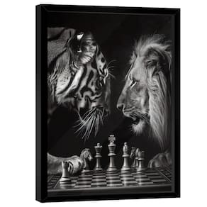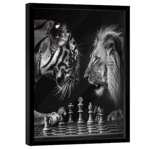 Quadro Decorativo Xadrez Felino Moldura Preta e Vidro - 150x100cm -