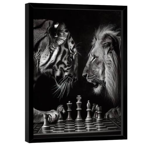 Quadro Decorativo Xadrez Felino Moldura Preta - 84x54cm -