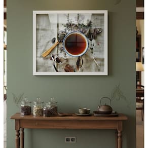 Quadro Decorativo Xícara Colher de Chá - 50x70cm - Cor: Moldura Branca