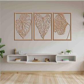 Tamanho total: 122cm comprimento x 60cm altura com espaçamento recomendado de 1 cm entre peças, Peças laterais: 60x40 cm peça central: 60x40 cm Espaçamento entre as peças: 1 cm A instalação é bem simples, não será preciso fazer sujeira furando a parede pois utilizamos o método bem prático para instalar, contém fita dupla face 3m no verso do quadro.