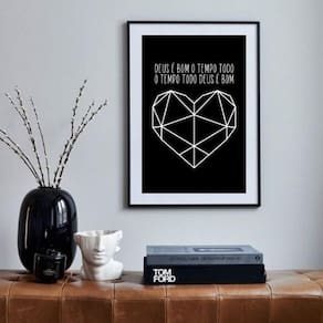 Quadro deus é bom o tempo todo - 60x48cm Moldura: madeira preta Informações do produto tire todas as suas dúvidas no descritivo abaixo: decoração para quarto, sala, cozinha, escritório, área gourmet e muito mais. Chega de paredes vazias medidas - cada peça tem 60x48cm . Material do papel - papel fotográfico brilhante de altíssima resolução acabamento - todos os quadros são acompanhados de vidro para proteção da imagem. - moldura em madeira maciça na cor preta ou branca conforme produto escolhido e pendurador. - paspatur branco com 7cm de largura - os quadros são embalados de forma segura com plástico bolha com camada dupla de acordo com o tamanho dos quadros. Garantia - garantia de 3 meses. Meu quadro chegou. Como posso fixá-lo Você precisa apenas de um martelo e um prego, pois os quadros já vão acompanhados de penduradores. Esta é a forma mais indicada. Como posso limpar meu quadro A limpeza é feita como um móvel comum da sua casa. Apenas um pano seco ou espanador são suficientes para tal