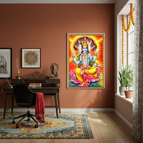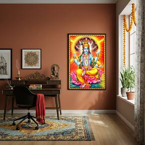 Quadro Deus Hindu Vishnu O Preservador do Universo -70x50cm - Cor: Moldura Preta