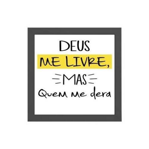 Quadro deus me livre quem me dera 20x20cm Moldura: madeira preta Informações do produto tire todas as suas dúvidas no descritivo abaixo: decoração para quarto, sala, cozinha, escritório, área gourmet e muito mais. Chega de paredes vazias medidas - cada peça tem 20x20cm. Material do papel - papel fotográfico brilhante de altíssima resolução acabamento - todos os quadros são acompanhados de uma película de acetato para proteção da imagem. - os quadros são embalados de forma segura com plástico bolha com camada dupla de acordo com o tamanho dos quadros. - de 3 meses. Meu quadro chegou. Como posso fixá-lo Você precisa apenas de um martelo e um prego, pois os quadros já vão acompanhados de penduradores. Esta é a forma mais indicada. Caso prefira, você pode utilizar uma fita dupla face neste caso, sugerimos de alta qualidade para evitar que descole e seu quadro caia . Como posso limpar meu quadro A limpeza é feita como um móvel comum da sua casa. Apenas um pano seco ou espanador são suficientes para tal Marca: Não Informado