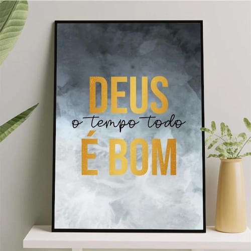 Quadro deus o tempo todo é bom 24x18cm Moldura: madeira branca Informações do produto tire todas as suas dúvidas no descritivo abaixo: decoração para quarto, sala, cozinha, escritório, área gourmet e muito mais. Chega de paredes vazias medidas - cada peça tem 24x18cm a5 . Material do papel - papel fotográfico brilhante de altíssima resolução acabamento - todos os quadros são acompanhados de uma película de acetato para proteção da imagem. - moldura em madeira maciça na cor preta e pendurador móvel que pode ser retirado facilmente caso deseje fixar com fita dupla face. - os quadros são embalados de forma segura com plástico bolha com camada dupla de acordo com o tamanho dos quadros. Garantia - garantia de 3 meses. Meu quadro chegou. Como posso fixá-lo Você precisa apenas de um martelo e um prego, pois os quadros já vão acompanhados de penduradores. Esta é a forma mais indicada. Caso prefira, você pode utilizar uma fita dupla face neste caso, sugerimos de alta qualidade para evitar que descole e seu quadro caia . Como posso limpar meu quadro A limpeza é feita como um móvel comum da sua casa. Apenas um pano seco ou espanador são suficientes para tal
