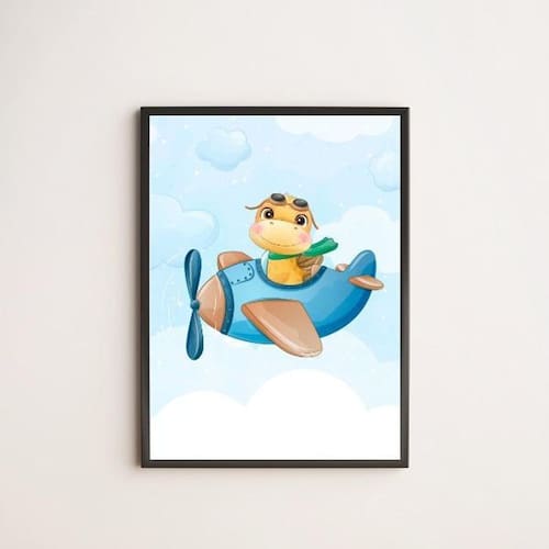 Quadro dinossaurinho fofo avião 45x34cm - com vidro Moldura: madeira preta Informações do produto tire todas as suas dúvidas no descritivo abaixo: decoração para quarto, sala, cozinha, escritório, área gourmet e muito mais. Chega de paredes vazias medidas - cada peça tem 45x34cm a3 . Material do papel - papel fotográfico brilhante de altíssima resolução acabamento - todos os quadros são acompanhados de vidro para proteção da imagem. - moldura em madeira maciça na cor preta e pendurador . - os quadros são embalados de forma segura com plástico bolha com camada dupla de acordo com o tamanho dos quadros. Garantia - garantia de 3 meses. Meu quadro chegou. Como posso fixá-lo Você precisa apenas de um martelo e um prego, pois os quadros já vão acompanhados de penduradores. Esta é a forma mais indicada. Como posso limpar meu quadro A limpeza é feita como um móvel comum da sua casa. Apenas um pano seco ou espanador são suficientes para tal