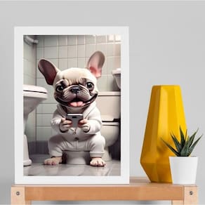 Quadro divertido banheiro - filhote bulldog 45x34cm - com vidro Cor: moldura branca Informações do produto tire todas as suas dúvidas no descritivo abaixo: decoração para quarto, sala, cozinha, escritório, área gourmet e muito mais. Chega de paredes vazias medidas - cada peça tem 45x34cm a3 . Material do papel - papel fotográfico brilhante de altíssima resolução acabamento - todos os quadros são acompanhados de vidro para proteção da imagem. - moldura em madeira maciça na cor preta ou branca conforme produto escolhido e pendurador . - os quadros são embalados de forma segura com plástico bolha com camada dupla de acordo com o tamanho dos quadros. Garantia - garantia de 3 meses. Meu quadro chegou. Como posso fixá-lo Você precisa apenas de um martelo e um prego, pois os quadros já vão acompanhados de penduradores. Esta é a forma mais indicada. Como posso limpar meu quadro A limpeza é feita como um móvel comum da sua casa. Apenas um pano seco ou espanador são suficientes para tal Ean: 7891234542847