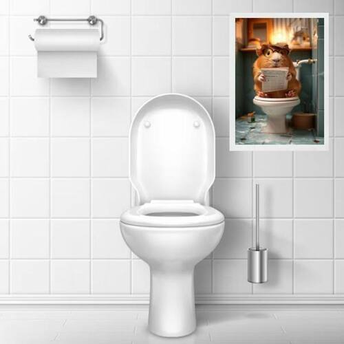 Quadro divertido banheiro hamster lendo jornal 24x18cm Cor: moldura branca Informações do produto tire todas as suas dúvidas no descritivo abaixo: decoração para quarto, sala, cozinha, escritório, área gourmet e muito mais. Chega de paredes vazias medidas - cada peça tem 24x18cm a5 . Material do papel - papel fotográfico brilhante de altíssima resolução acabamento - todos os quadros são acompanhados de uma película de acetato para proteção da imagem. - os quadros são embalados de forma segura com plástico bolha com camada dupla de acordo com o tamanho dos quadros. Garantia - garantia de 3 meses. Meu quadro chegou. Como posso fixá-lo Você precisa apenas de um martelo e um prego, pois os quadros já vão acompanhados de penduradores. Esta é a forma mais indicada. Caso prefira, você pode utilizar uma fita dupla face neste caso, sugerimos de alta qualidade para evitar que descole e seu quadro caia . Como posso limpar meu quadro A limpeza é feita como um móvel comum da sua casa. Apenas um pano seco ou espanador são suficientes para tal
