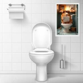 Quadro divertido banheiro hamster lendo jornal 45x34cm Cor: moldura preta Informações do produto tire todas as suas dúvidas no descritivo abaixo: decoração para quarto, sala, cozinha, escritório, área gourmet e muito mais. Chega de paredes vazias. Medidas - cada peça tem 45x34cm a3 . Material do papel - papel fotográfico brilhante de altíssima resolução acabamento - todos os quadros são acompanhados de uma película de acetato para proteção da imagem. - os quadros são embalados de forma segura com plástico bolha com camada dupla de acordo com o tamanho dos quadros. Garantia - garantia de 3 meses. Meu quadro chegou. Como posso fixá-lo Você precisa apenas de um martelo e um prego, pois os quadros já vão acompanhados de penduradores. Esta é a forma mais indicada. Caso prefira, você pode utilizar uma fita dupla face neste caso, sugerimos de alta qualidade para evitar que descole e seu quadro caia . Como posso limpar meu quadro A limpeza é feita como um móvel comum da sua casa. Apenas um pano seco ou espanador são suficientes para tal