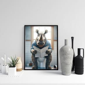Quadro divertido banheiro - rinoceronte 24x18cm Cor: moldura preta Informações do produto tire todas as suas dúvidas no descritivo abaixo: decoração para quarto, sala, cozinha, escritório, área gourmet e muito mais. Chega de paredes vazias medidas - cada peça tem 24x18cm a5 . Material do papel - papel fotográfico brilhante de altíssima resolução acabamento - todos os quadros são acompanhados de uma película de acetato para proteção da imagem. - os quadros são embalados de forma segura com plástico bolha com camada dupla de acordo com o tamanho dos quadros. Garantia - garantia de 3 meses. Meu quadro chegou. Como posso fixá-lo Você precisa apenas de um martelo e um prego, pois os quadros já vão acompanhados de penduradores. Esta é a forma mais indicada. Caso prefira, você pode utilizar uma fita dupla face neste caso, sugerimos de alta qualidade para evitar que descole e seu quadro caia . Como posso limpar meu quadro A limpeza é feita como um móvel comum da sua casa. Apenas um pano seco ou espanador são suficientes para tal
