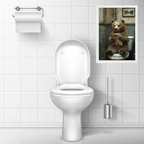 Quadro divertido banheiro ursinho lendo jornal 33x24cm Cor: moldura branca Informações do produto tire todas as suas dúvidas no descritivo abaixo: decoração para quarto, sala, cozinha, escritório, área gourmet e muito mais. Chega de paredes vazias medidas - cada peça tem 33x24cm a4 . Material do papel - papel fotográfico brilhante de altíssima resolução acabamento - todos os quadros são acompanhados de uma película de acetato para proteção da imagem. - os quadros são embalados de forma segura com plástico bolha com camada dupla de acordo com o tamanho dos quadros. Garantia - garantia de 3 meses. Meu quadro chegou. Como posso fixá-lo Você precisa apenas de um martelo e um prego, pois os quadros já vão acompanhados de penduradores. Esta é a forma mais indicada. Caso prefira, você pode utilizar uma fita dupla face neste caso, sugerimos de alta qualidade para evitar que descole e seu quadro caia . Como posso limpar meu quadro A limpeza é feita como um móvel comum da sua casa. Apenas um pano seco ou espanador são suficientes para tal