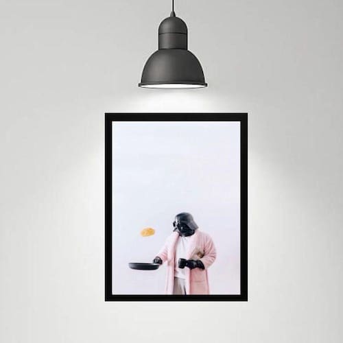 Quadro divertido cozinha darth 33x24cm - com vidro Moldura: madeira preta Informações do produto tire todas as suas dúvidas no descritivo abaixo: decoração para quarto, sala, cozinha, escritório, área gourmet e muito mais. Chega de paredes vazias medidas - cada peça tem 33x24cm a4 . Material do papel - papel fotográfico brilhante de altíssima resolução acabamento - todos os quadros são acompanhados de vidro para proteção da imagem. - moldura em madeira maciça na cor preta ou branca conforme produto escolhido e pendurador . - os quadros são embalados de forma segura com plástico bolha com camada dupla de acordo com o tamanho dos quadros. Garantia - garantia de 3 meses. Meu quadro chegou. Como posso fixá-lo Você precisa apenas de um martelo e um prego, pois os quadros já vão acompanhados de penduradores. Esta é a forma mais indicada. Como posso limpar meu quadro A limpeza é feita como um móvel comum da sua casa. Apenas um pano seco ou espanador são suficientes para tal