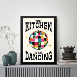 Quadro divertido cozinha para dançar 45x34cm Cor: moldura preta Informações do produto tire todas as suas dúvidas no descritivo abaixo: decoração para quarto, sala, cozinha, escritório, área gourmet e muito mais. Chega de paredes vazias. Medidas - cada peça tem 45x34cm a3 . Material do papel - papel fotográfico brilhante de altíssima resolução acabamento - todos os quadros são acompanhados de uma película de acetato para proteção da imagem. - os quadros são embalados de forma segura com plástico bolha com camada dupla de acordo com o tamanho dos quadros. - de 3 meses. Meu quadro chegou. Como posso fixá-lo Você precisa apenas de um martelo e um prego, pois os quadros já vão acompanhados de penduradores. Esta é a forma mais indicada. Caso prefira, você pode utilizar uma fita dupla face neste caso, sugerimos de alta qualidade para evitar que descole e seu quadro caia . Como posso limpar meu quadro A limpeza é feita como um móvel comum da sua casa. Apenas um pano seco ou espanador são suficientes para tal Marca: Não Informado