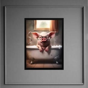 Quadro divertido para banheiro - porquinho 45x34cm Moldura: madeira preta Informações do produto tire todas as suas dúvidas no descritivo abaixo: decoração para quarto, sala, cozinha, escritório, área gourmet e muito mais. Chega de paredes vazias. Medidas - cada peça tem 45x34cm a3 . Material do papel - papel fotográfico brilhante de altíssima resolução acabamento - todos os quadros são acompanhados de uma película de acetato para proteção da imagem. - os quadros são embalados de forma segura com plástico bolha com camada dupla de acordo com o tamanho dos quadros. Garantia - garantia de 3 meses. Meu quadro chegou. Como posso fixá-lo Você precisa apenas de um martelo e um prego, pois os quadros já vão acompanhados de penduradores. Esta é a forma mais indicada. Caso prefira, você pode utilizar uma fita dupla face neste caso, sugerimos de alta qualidade para evitar que descole e seu quadro caia . Como posso limpar meu quadro A limpeza é feita como um móvel comum da sua casa. Apenas um pano seco ou espanador são suficientes para tal