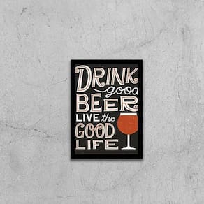 Quadro Drink Good Beer, Live Good Life 24X18Cm Moldura: madeira branca Informações do produto Decoração para quarto, sala, cozinha, escritório, área gourmet e muito mais. Chega de paredes vazias. Medidas - cada peça tem 24x18cm a5 . Material do papel - papel fotográfico brilhante de altíssima resolução Acabamento - todos os quadros são acompanhados de uma película de acetato para proteção da imagem. - moldura em madeira maciça na cor branca e pendurador móvel que pode ser retirado facilmente caso deseje fixar com fita dupla face. - os quadros são embalados de forma segura com plástico bolha com camada dupla de acordo com o tamanho dos quadros. - de 3 meses Meu quadro chegou. Como posso fixá-lo: Você precisa apenas de um martelo e um prego, pois os quadros já vão acompanhados de penduradores. Esta é a forma mais indicada. Caso prefira, você pode utilizar uma fita dupla face neste caso, sugerimos de alta qualidade para evitar que descole e seu quadro caia . Como posso limpar meu quadro: A limpeza é feita como um móvel comum da sua casa. Apenas um pano seco ou espanador são suficientes para tal Marca: Não Informado