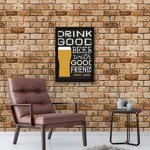 Quadro drink good beer with good friends 45x34cm - com vidro Moldura: madeira preta Informações do produto tire todas as suas dúvidas no descritivo abaixo: decoração para quarto, sala, cozinha, escritório, área gourmet e muito mais. Chega de paredes vazias medidas - cada peça tem 45x34cm a3 . Material do papel - papel fotográfico brilhante de altíssima resolução acabamento - todos os quadros são acompanhados de vidro para proteção da imagem. - moldura em madeira maciça na cor preta e pendurador . - os quadros são embalados de forma segura com plástico bolha com camada dupla de acordo com o tamanho dos quadros. - de 3 meses. Meu quadro chegou. Como posso fixá-lo Você precisa apenas de um martelo e um prego, pois os quadros já vão acompanhados de penduradores. Esta é a forma mais indicada. Como posso limpar meu quadro A limpeza é feita como um móvel comum da sua casa. Apenas um pano seco ou espanador são suficientes para tal Marca: Não Informado