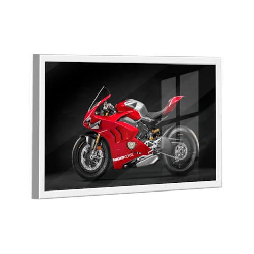 Quadro Ducati Panigale V4 -- BR ARTES Moldura Branca e Vidro - Médio 84x54 -