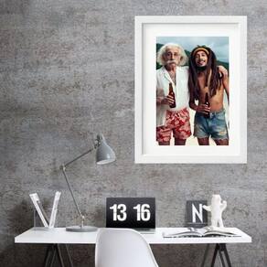 Quadro einstein e bob marley- 60x48cm Cor: moldura branca Informações do produto tire todas as suas dúvidas no descritivo abaixo: decoração para quarto, sala, cozinha, escritório, área gourmet e muito mais. Chega de paredes vazias medidas - cada peça tem 60x48cm . Material do papel - papel fotográfico brilhante de altíssima resolução acabamento - todos os quadros são acompanhados de vidro para proteção da imagem. - moldura em madeira maciça na cor preta ou branca conforme produto escolhido e pendurador. - paspatur branco com 7cm de largura - os quadros são embalados de forma segura com plástico bolha com camada dupla de acordo com o tamanho dos quadros. Garantia - garantia de 3 meses. Meu quadro chegou. Como posso fixá-lo Você precisa apenas de um martelo e um prego, pois os quadros já vão acompanhados de penduradores. Esta é a forma mais indicada. Como posso limpar meu quadro A limpeza é feita como um móvel comum da sua casa. Apenas um pano seco ou espanador são suficientes para tal