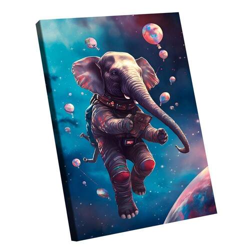 Quadro Elefante Espacial -- BR ARTES Borda Infinita - Pequeno 60x40 -