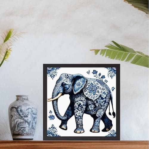 Quadro elefante estilo azulejo português - 33x33cm Cor: moldura preta Informações do produto tire todas as suas dúvidas no descritivo abaixo: decoração para quarto, sala, cozinha, escritório, área gourmet e muito mais. Chega de paredes vazias medidas - cada peça tem 33x33cm. Material do papel - papel fotográfico brilhante de altíssima resolução acabamento - todos os quadros são acompanhados de uma película de acetato para proteção da imagem. - os quadros são embalados de forma segura com plástico bolha com camada dupla de acordo com o tamanho dos quadros. - de 3 meses. Meu quadro chegou. Como posso fixá-lo Você precisa apenas de um martelo e um prego, pois os quadros já vão acompanhados de penduradores. Esta é a forma mais indicada. Caso prefira, você pode utilizar uma fita dupla face neste caso, sugerimos de alta qualidade para evitar que descole e seu quadro caia . Como posso limpar meu quadro A limpeza é feita como um móvel comum da sua casa. Apenas um pano seco ou espanador são suficientes para tal Marca: Não Informado