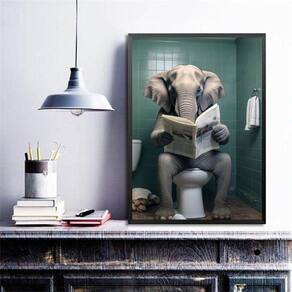 Quadro elefante no banheiro lendo jornal 45x34cm Moldura: madeira branca Informações do produto tire todas as suas dúvidas no descritivo abaixo: decoração para quarto, sala, cozinha, escritório, área gourmet e muito mais. Chega de paredes vazias. Medidas - cada peça tem 45x34cm a3 . Material do papel - papel fotográfico brilhante de altíssima resolução acabamento - todos os quadros são acompanhados de uma película de acetato para proteção da imagem. - os quadros são embalados de forma segura com plástico bolha com camada dupla de acordo com o tamanho dos quadros. Garantia - garantia de 3 meses. Meu quadro chegou. Como posso fixá-lo Você precisa apenas de um martelo e um prego, pois os quadros já vão acompanhados de penduradores. Esta é a forma mais indicada. Caso prefira, você pode utilizar uma fita dupla face neste caso, sugerimos de alta qualidade para evitar que descole e seu quadro caia . Como posso limpar meu quadro A limpeza é feita como um móvel comum da sua casa. Apenas um pano seco ou espanador são suficientes para tal Ean: 7899980092326