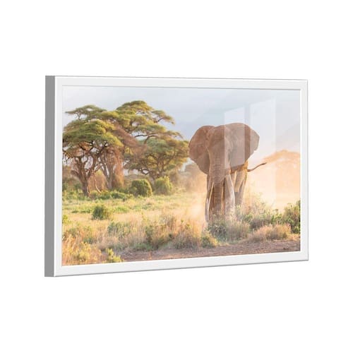 Quadro Elefante Savana -- Br Artes Quadro Elefante Savana -- BR ARTES Moldura Branca e Vidro - Pequeno 60x40 - - Qualidade Premium (padrão museu)