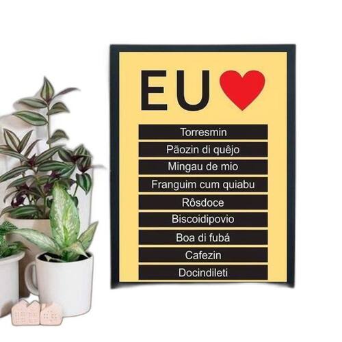 Quadro eu amo ser mineiro 33x24cm - com vidro Moldura: madeira preta Informações do produto Decoração para quarto, sala, cozinha, escritório, área gourmet e muito mais. Chega de paredes vazias Medidas - cada peça tem 33x24cm a4 . Material do papel - papel fotográfico brilhante de altíssima resolução Acabamento - todos os quadros são acompanhados de vidro para proteção da imagem. - Moldura em madeira maciça na cor preta e pendurador . - Os quadros são embalados de forma segura com plástico bolha com camada dupla de acordo com o tamanho dos quadros. - de 3 meses. Meu quadro chegou. Como posso fixá-lo Você precisa apenas de um martelo e um prego, pois os quadros já vão acompanhados de penduradores. Esta é a forma mais indicada. Caso prefira, você pode utilizar uma fita dupla face neste caso, sugerimos de alta qualidade para evitar que descole e seu quadro caia . Como posso limpar meu quadro A limpeza é feita como um móvel comum da sua casa. Apenas um pano seco ou espanador são suficientes para tal Marca: Não Informado