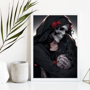 Além disso, o Quadro Decorativo Exu Caveira E Pombagira vem acompanhado de vidro para proteção da imagem. Sua moldura é feita em madeira maciça na cor branca, trazendo um toque elegante para a decoração. O quadro também possui um pendurador, facilitando a sua fixação na parede.