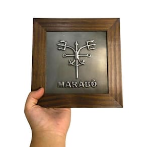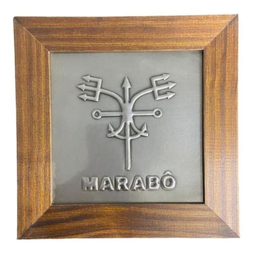 Quadro Exu Marabô Madeira Imbuia e Metal 18 x18 cm Encante seu espaço com a presença imponente e protetora de Exu Marabô neste magnífico quadro artesanal. Feito com madeira de imbuia e metal, este quadro de 18x18 cm é uma obra de arte única que celebra a energia poderosa deste importante orixá.