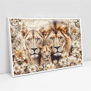 Quadro família leões flores - 50x70cm Cor: moldura branca Informações do produto tire todas as suas dúvidas no descritivo abaixo: decoração para quarto, sala, cozinha, escritório, área gourmet e muito mais. Chega de paredes vazias medidas - cada peça tem 70x50cm . Material do papel - papel fotográfico brilhante de altíssima resolução acabamento - todos os quadros são acompanhados de vidro para proteção da imagem. - moldura em madeira maciça na cor preta ou branca conforme produto escolhido e pendurador. - os quadros são embalados de forma segura com plástico bolha com camada dupla de acordo com o tamanho dos quadros. - de 3 meses. Meu quadro chegou. Como posso fixá-lo Você precisa apenas de um martelo e um prego, pois os quadros já vão acompanhados de penduradores. Esta é a forma mais indicada. Como posso limpar meu quadro A limpeza é feita como um móvel comum da sua casa. Apenas um pano seco ou espanador são suficientes para tal Marca: Não Informado Ean: 7901039764419