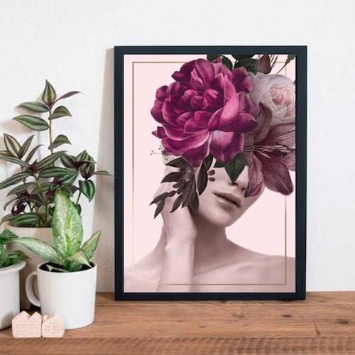 Quadro fashion fotografia mullher e flores 45x34cm Moldura: madeira preta